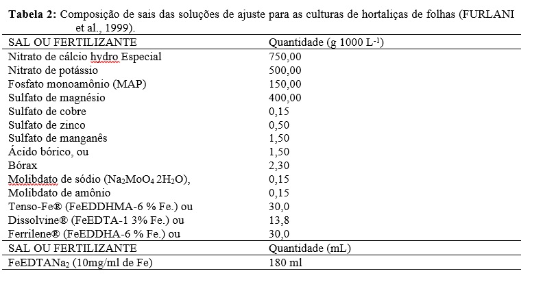 FURLANI, P. R.; SILVEIRA, L. C. P.; BOLONHEZI, D.; FAQUIN, V. Cultivo hidropônico de plantas. Boletim Técnico 180. Instituto Agronômico, Campinas, 1999. 52 p.
