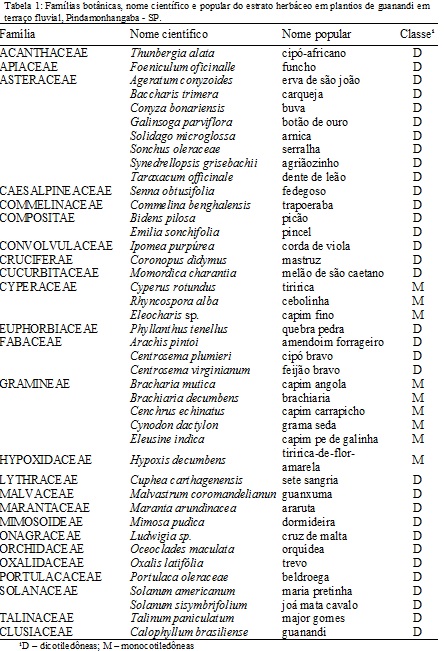 SOUSA, G. F. de; OLIVEIRA, L. A. de; SILVA, J. F. da. Plantas invasoras em sistemas agroflorestais com cupuaçuzeiro nomunicípio de Presidente Figueiredo (Amazonas, Brasil). Acta Amazonica, vol. 33, n. 3, p. 353-370, 2003. Disponível em: <https://dx.doi.org/10.1590/S0044-59672003000300002>. Acesso em: 12 Mar 2019.
