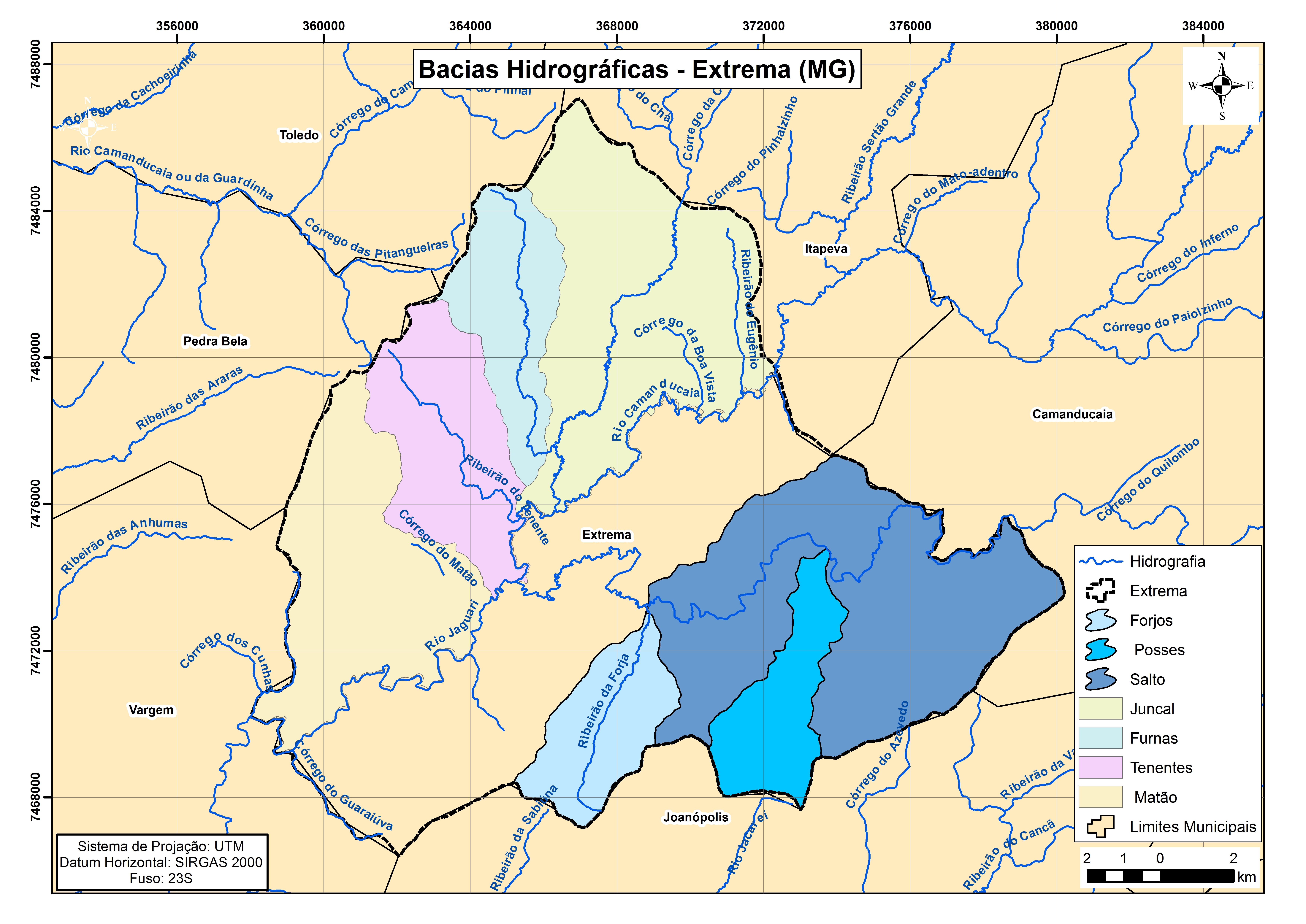 - Mapa da divisão das sub-bacias do rio Jaguari no município de Extrema (MG)