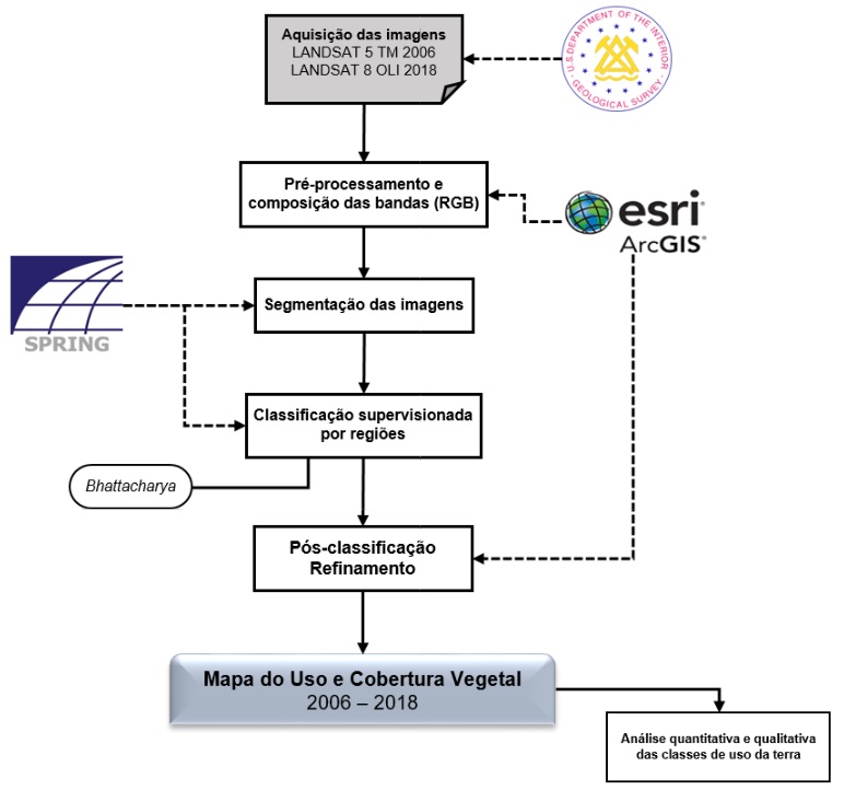 - Fluxograma que sintetiza os procedimentos metodológicos para a elaboração dos mapas de uso da terra e cobertura vegetal