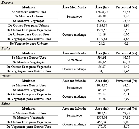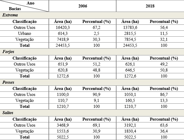 - Mudanças do uso do solo no município de Extrema e sub-bacias do Forjos, Posses e Saltos entre os anos de 2006 e 2018