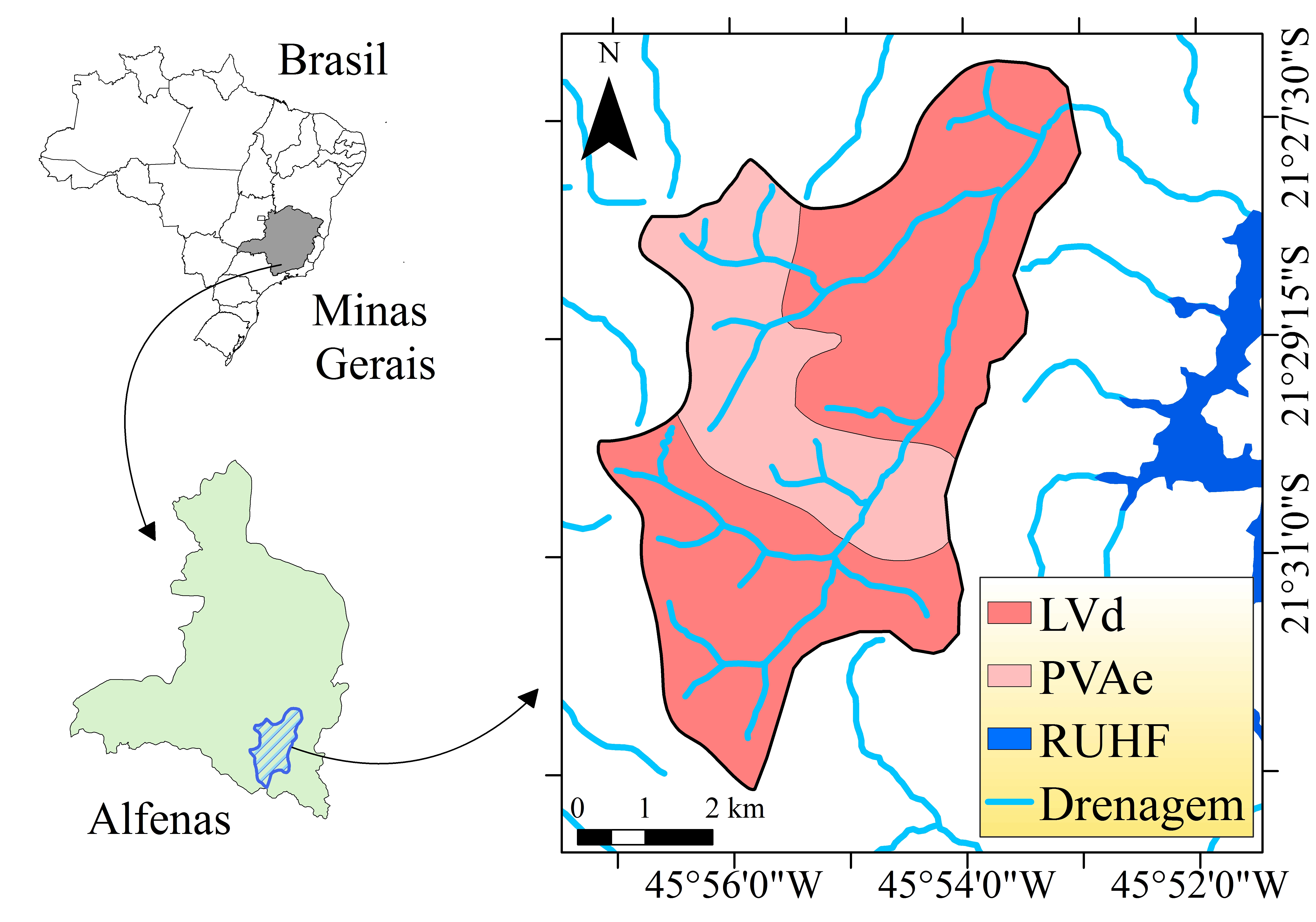 UFV - CETEC - UFLA – FEAM, 2010. Mapa de solos do Estado de Minas Gerais. Belo Horizonte, Fundação Estadual do Meio Ambiente, 2010. Disponível em: <http://www.feam.br/noticias/1/949-mapas-de-solo-do-estado-de-minas-gerais>. Acesso 08 nov. 2020.