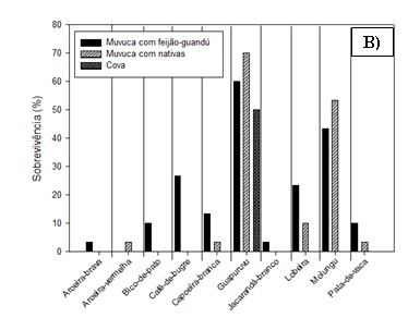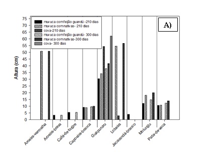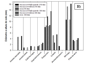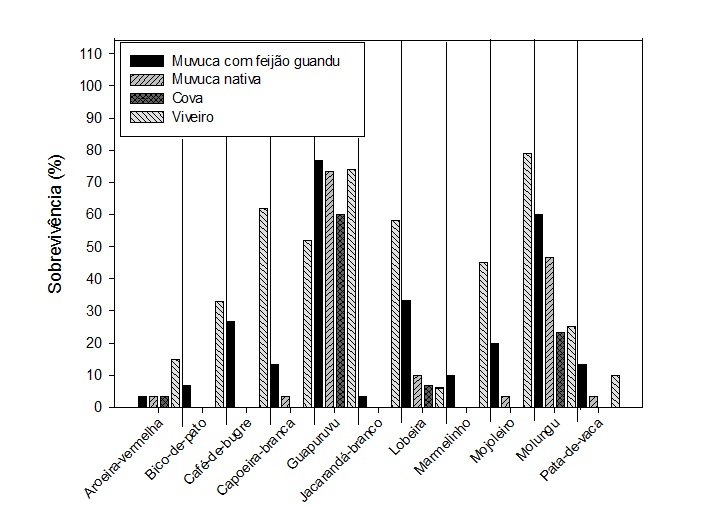 O crescimento acelerado da população juntamente com o atual padrão de vida vivenciados nas últimas décadas vêm trazendo diversos impactos ambientais e sociais. Na maioria dos municípios a disposição de resíduos sólidos urbanos (RSU) é descartada em áreas sem prévio tratamento ou fiscalização adequada, que quando são desativadas encontram-se degradadas e necessitam da elaboração de um plano de recuperação e revegetação, além do monitoramento, ao longo dos anos, para avaliar o desenvolvimento das espécies implantadas. Todavia estes problemas podem ser minimizados, principalmente se houver a recuperação do local atingido. Sendo assim, o presente estudo visou avaliar a emergência das espécies arbóreas semeadas na cova e em sulco aos 90 dias, e o desenvolvimento das plântulas emergidas aos 210 e 300 dias, podendo assim avaliar as espécies que melhor se adaptam à condição da área do lixão de Inconfidentes-MG. O experimento foi instalado no delineamento estatístico inteiramente casualizado com 3 tratamentos de semeadura direta, com 15 espécies arbóreas nativas e três repetições (T1: semeadura direta de espécies nativas em cova; T2: semeadura direta de espécies nativas em sulco através de muvuca; T3: semeadura direta de espécies nativas associadas com feijão-guandu em sulco através de muvuca). O modelo de plantio que tem a associação de sementes de espécies arbóreas com feijão-guandu em sulco (T3) é o método mais indicado para a recuperação de áreas de lixões. As espécies arbóreas que se destacaram quanto à emergência e estabelecimento foram Schizolobium parahyba (guapuruvu) e Eritrina speciosa (molungu).Downloads