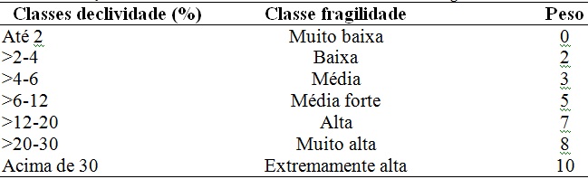 Este estudo foi desenvolvido no Município de Santa Terezinha, no Estado do Mato Grosso, com objetivou identificar e caracterizar áreas naturais com elevado potencial de fragilidade ambiental com uso de imagens de satélites. Os potenciais das áreas consideradas no presente estudo com fragilidade ambiental situaram-se entre médio e forte, sendo o tipo de uso do solo determinante na sua variação. O predominante uso do solo nessas áreas com pastagens implantadas ou naturais com pouca produção de biomassa, sem nenhuma ou pouquíssima atenção quanto os aspectos de conservação de solo e água e/ou aporte de fertilizantes favoreceu a elevação das suas fragilidades.