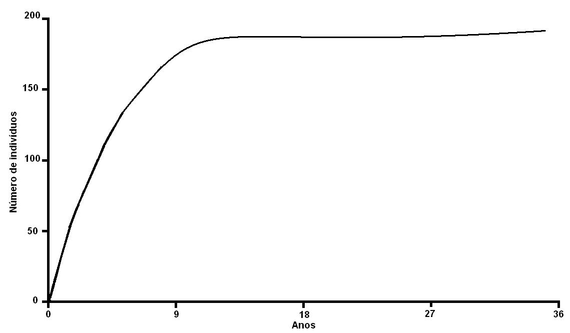 - Figura 2. Exemplo do padrão de crescimento gerado através do modelo logístico de Verhulst.