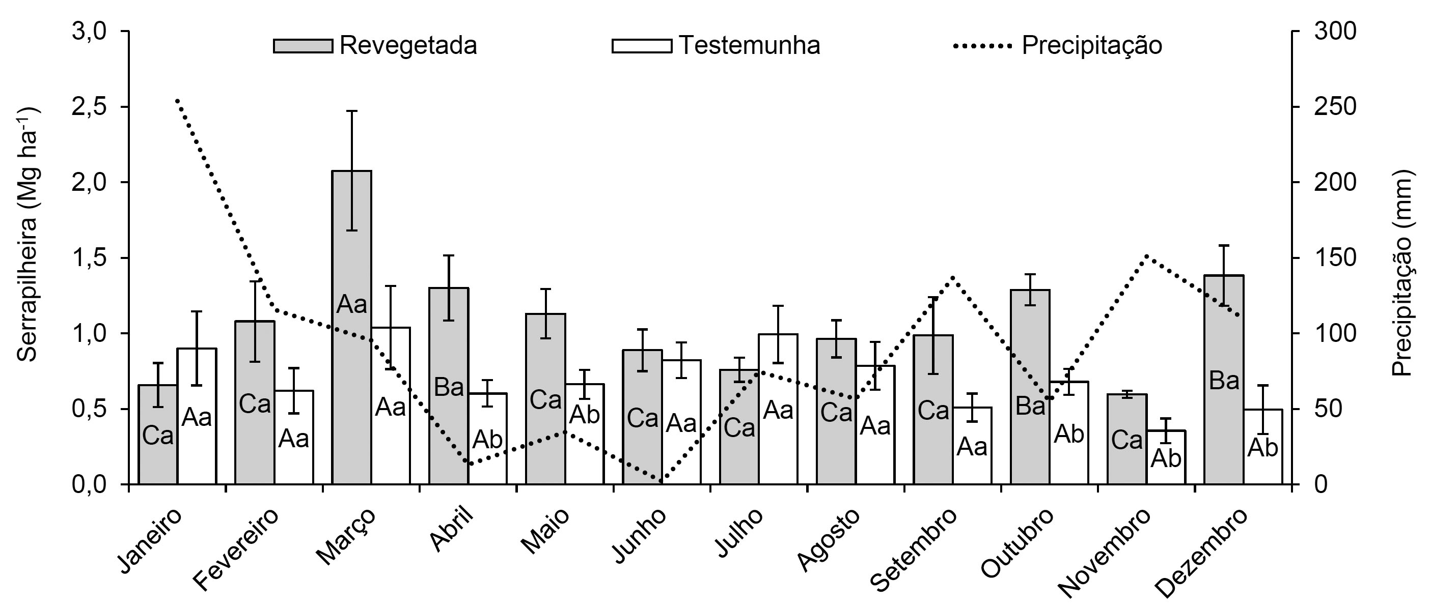 Efeito de revegetação florestal no aporte de serrapilheira, Seropédica – RJ.