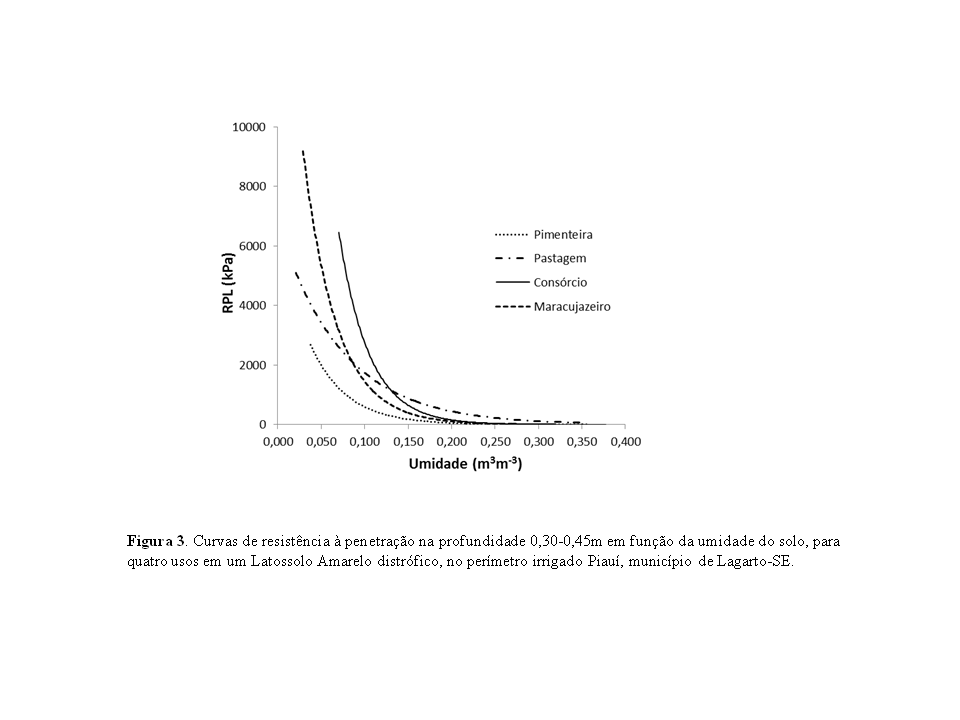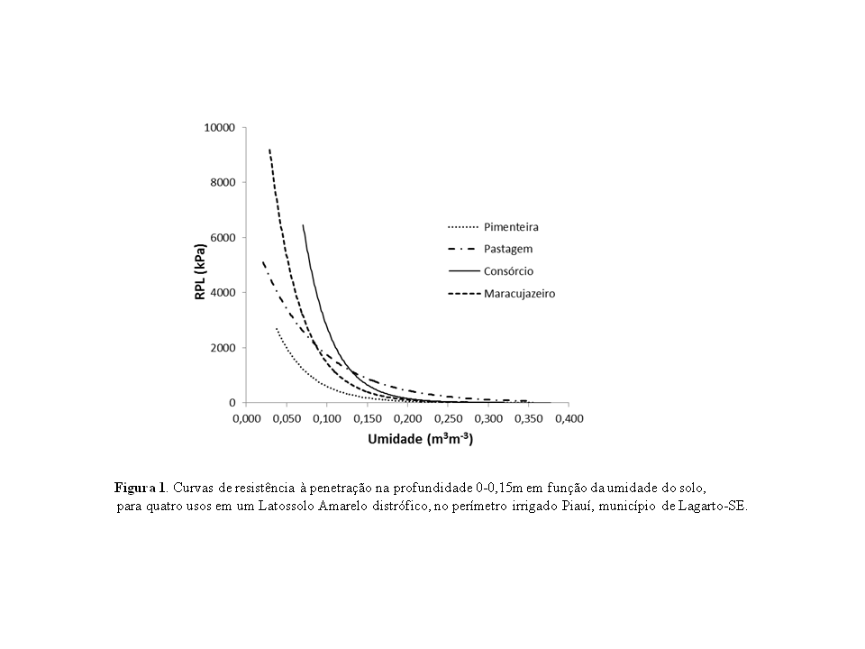 - Figura 1. Curvas de resistência à penetração na profundidade 0-0,15m em função da umidade do solo, para quatro usos em um Latossolo Amarelo distrófico, no perímetro irrigado Piauí, município de Lagarto-SE.