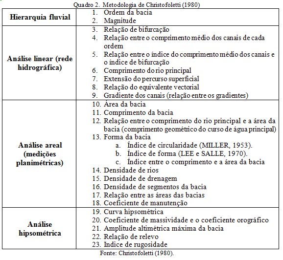- Quadro 2. Metodologia de Christofoletti (1980)