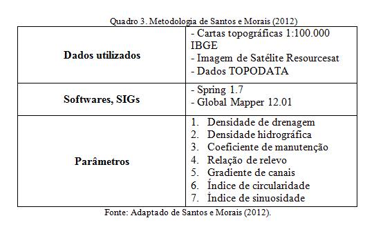 - Quadro 3. Metodologia de Santos e Morais (2012).