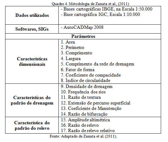 - Quadro 4. Metodologia de Zanata et al. (2011)