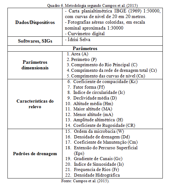 - Quadro 6. Metodologia segundo Campos et al. (2015)