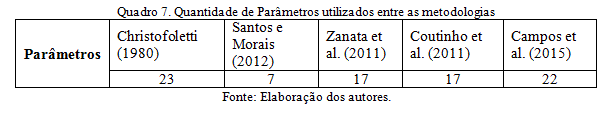 - Quadro 7. Quantidade de Parâmetros utilizados entre as metodologias