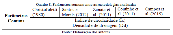 - Quadro 8. Parâmetros comuns entre as metodologias analisadas