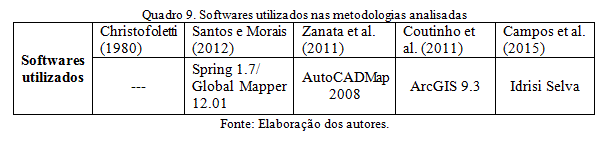 - Quadro 9. Softwares utilizados nas metodologias analisadas